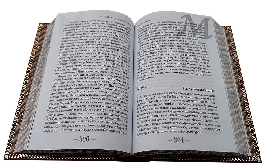 Откройте для себя «Книгу Москвы» — роскошное издание в прочном кожаном переплёте, выполненное на современном итальянском оборудовании. Внутри вас ждут увлекательные очерки о тайнах города, его жителях и скрытых уголках, оформленные крупным шрифтом и украшенные атмосферными иллюстрациями. Массивная фактура обложки и приятная на ощупь бумага создают особое ощущение качества, а содержательный текст, написанный простым и понятным языком, станет надежным справочником по истории, культуре и архитектуре столицы. Мы предлагаем несколько способов оформления заказа — по электронной почте, телефону или через онлайн-форму. Для сохранности книги при транспортировке вы можете выбрать деревянный ящик, обеспечивающий защиту от влаги и механических ударов. Наши консультанты помогут подобрать оптимальный способ оплаты, расскажут о текущих акциях и предложат индивидуальные условия для постоянных клиентов. Пополните вашу домашнюю библиотеку этой великолепной энциклопедией московских легенд и фактов!