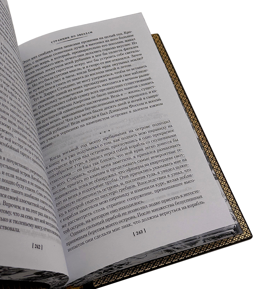 Издание представлено в классическом книжном формате 150 х 220 мм и облачено в переплёт из натуральной кожи высшего качества, созданный мастерами переплётного дела вручную. Изысканное художественное тиснение на корешке придаёт тому элегантную строгость и подчёркивает его коллекционную ценность. Плотная офсетная бумага обеспечивает комфортное чтение, а безупречное качество печати делает этот том достойным представителем премиальной литературы.