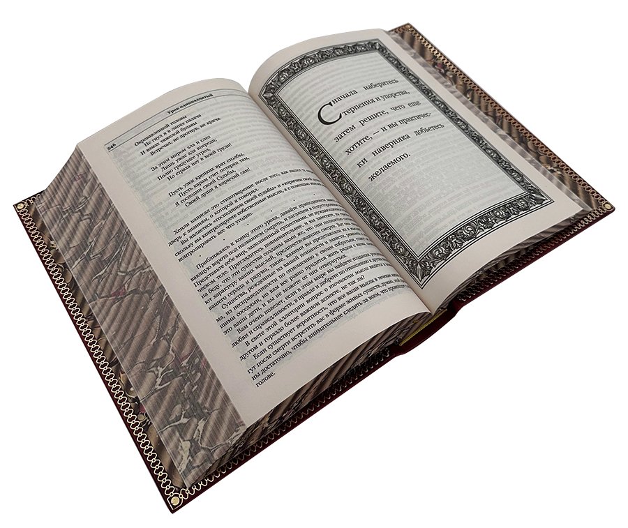 Подарочное издание Наполеона Хилла «Закон успеха. 16 уроков, на которых основывается любой успех» в изысканном кожаном переплёте сочетает в себе престижный дизайн и проверенный временем практический материал по достижению целей. Натуральная кожа высокого класса с тонким блинтовым и золотым тиснением придаёт обложке благородный вид, выгодно подчёркивая статус книги. Внутри каждое слово напечатано на плотной бумаге: текст дополняют эксклюзивные иллюстрации и авторские комментарии, создающие атмосферу мотивации и глубокого погружения в принципы успеха. Прочный переплёт гарантирует сохранность издания при многолетнем использовании, что делает его идеальным подарком для тех, кто стремится к личностному росту и самосовершенствованию. Детальная проработка каждой страницы — от выбора шрифта до расстановки визуальных акцентов — превращает этот экземпляр в настоящую коллекционную ценность.