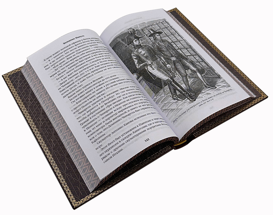 Книга выполнена в классическом формате 150 х 220 мм и облачена в переплёт из натуральной кожи высшего качества, созданный мастерами переплётного дела вручную. Элегантное художественное тиснение украшает корешок, придавая изданию благородный и коллекционный вид. Высококачественная офсетная бумага обеспечивает идеальную читаемость, а безупречная полиграфия делает этот том объёмом 384 страницы не только предметом гордости коллекционера, но и удобным для повседневного чтения изданием, которое прослужит долгие годы.
