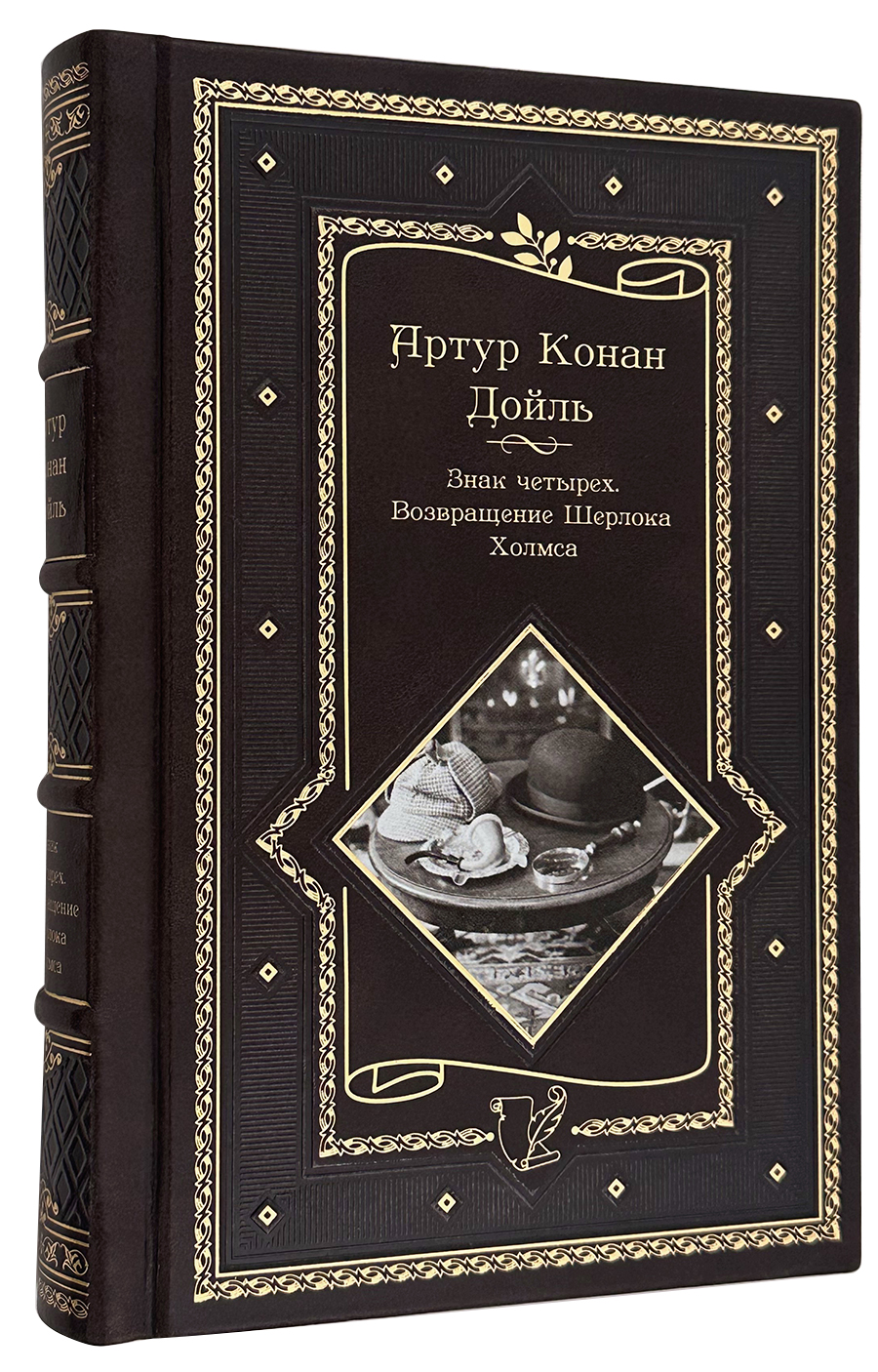 Легендарный роман Артура Конан Дойля «Знак четырех» и культовый сборник «Возвращение Шерлока Холмса» в роскошном подарочном кожаном переплёте — это издание, объединяющее два важнейших этапа в истории великого сыщика. «Знак четырех» (1890) стал вторым романом о Холмсе, где читателя ждёт не только запутанное дело о пропавших сокровищах и таинственной метке, но и знакомство с привычкой героя к кокаину, а также появление одного из самых ярких второстепенных персонажей — беспомощного, но гениального в раскрытии преступлений мальчишек-беспризорников .