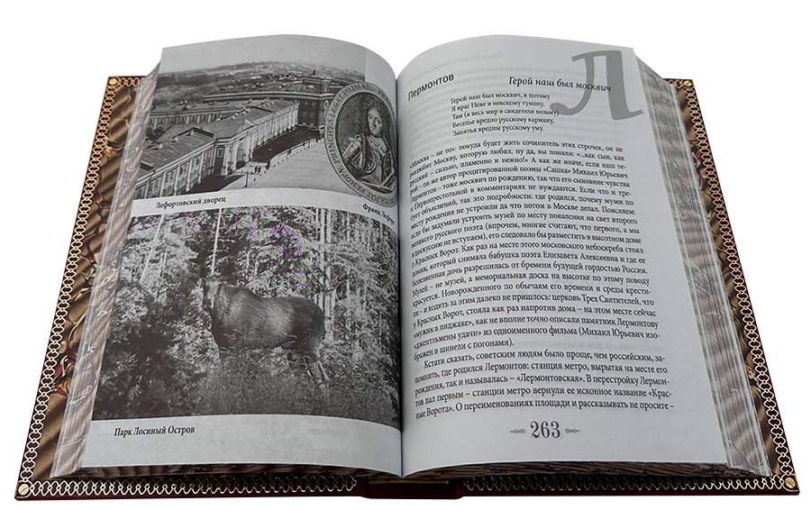 Откройте для себя «Книгу Москвы» — роскошное издание в прочном кожаном переплёте, выполненное на современном итальянском оборудовании. Внутри вас ждут увлекательные очерки о тайнах города, его жителях и скрытых уголках, оформленные крупным шрифтом и украшенные атмосферными иллюстрациями. Массивная фактура обложки и приятная на ощупь бумага создают особое ощущение качества, а содержательный текст, написанный простым и понятным языком, станет надежным справочником по истории, культуре и архитектуре столицы. Мы предлагаем несколько способов оформления заказа — по электронной почте, телефону или через онлайн-форму. Для сохранности книги при транспортировке вы можете выбрать деревянный ящик, обеспечивающий защиту от влаги и механических ударов. Наши консультанты помогут подобрать оптимальный способ оплаты, расскажут о текущих акциях и предложат индивидуальные условия для постоянных клиентов. Пополните вашу домашнюю библиотеку этой великолепной энциклопедией московских легенд и фактов!