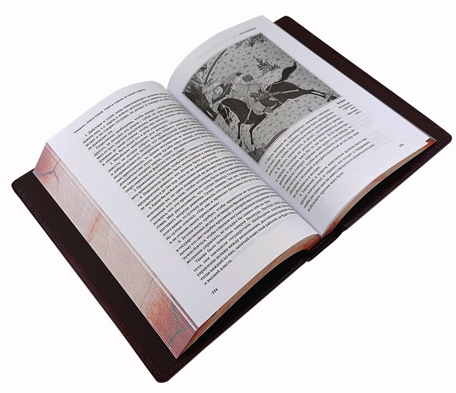 Отдельное внимание в издании уделено искусной брошюровке и качеству материалов. Ручная работа придаёт книге особую ценность — переплет из натуральной кожи и тщательно подобранная бумага создают впечатление настоящей исторической реликвии. Каждое издание оформлено индивидуально, что делает его уникальным подарком для коллекционеров и любителей истории.