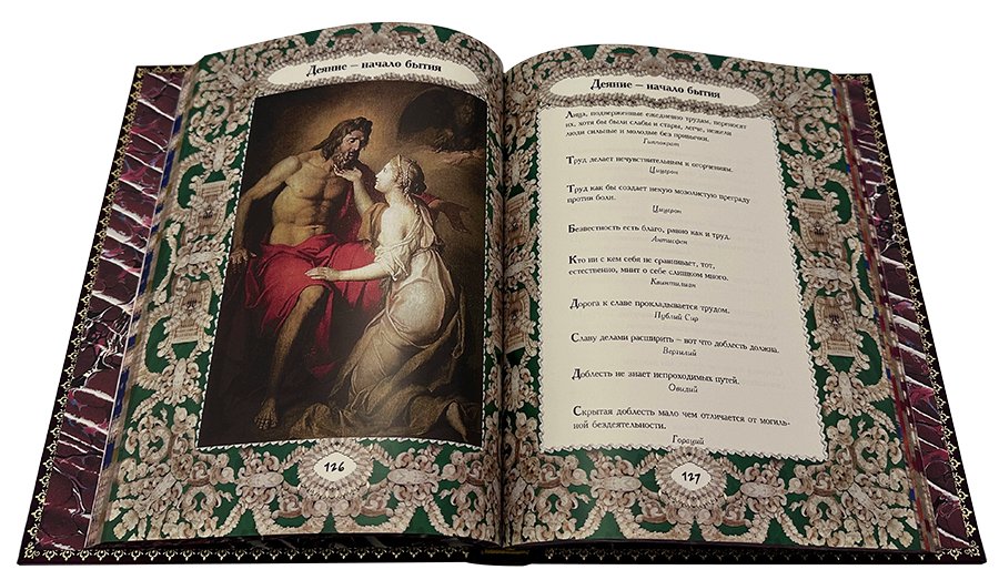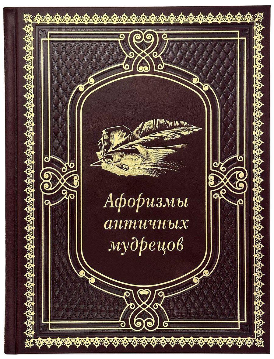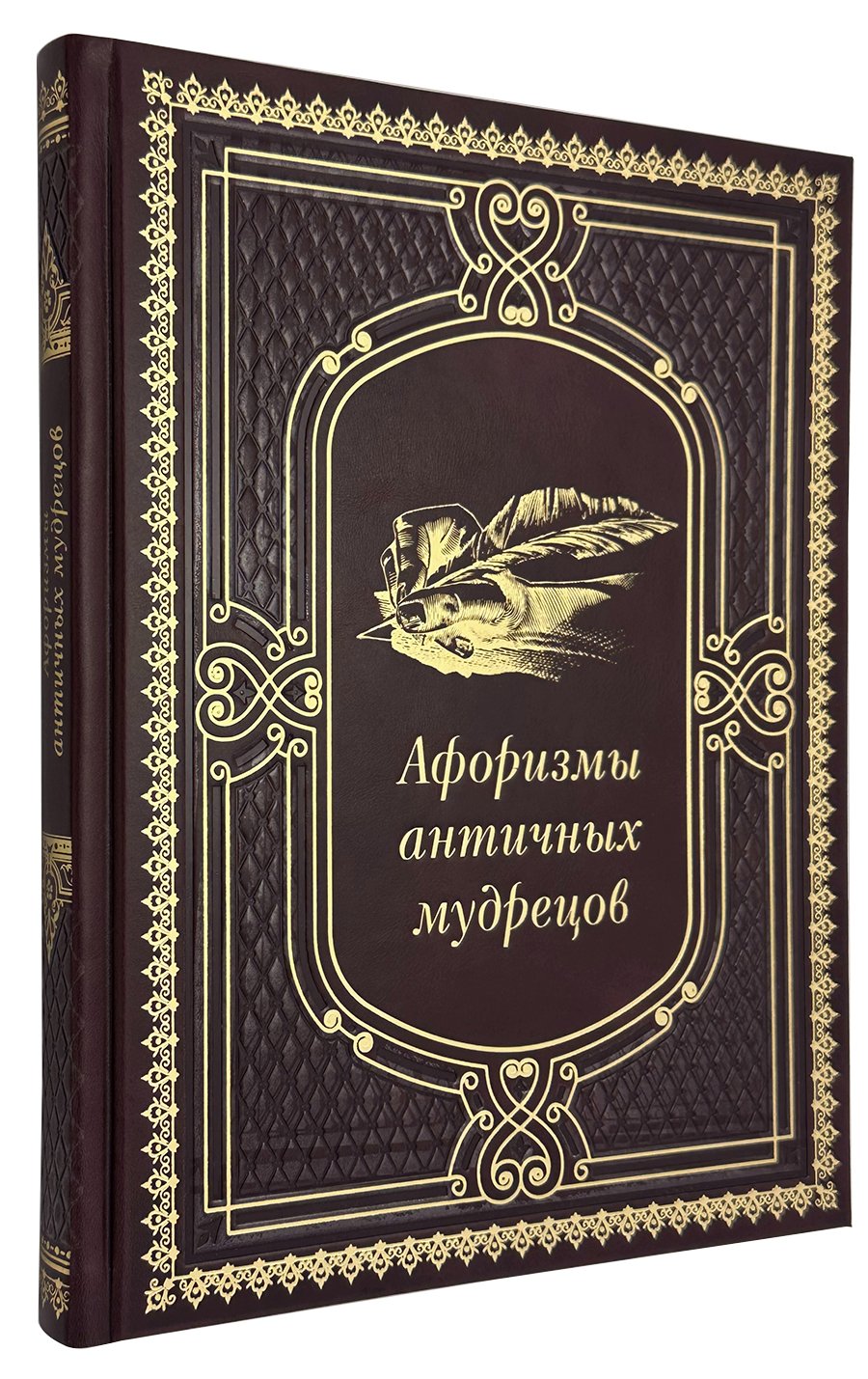 Подарочное издание «Афоризмы античных мудрецов» представляет собой изысканный сборник мудрых высказываний великих мыслителей Древней Греции и Рима. Фактурная плотная бумага тёплого тона прекрасно подчёркивает каждую цитату, а оформление делает издание настоящим произведением искусства: натуральная кожа ручной выделки с тонким тиснением золотой фольгой, цветной форзац, окрашенный обрез, шелковые ляссе и каптал придают книге благородный и статусный вид. Это идеальный подарок ценителям философии и классики, который украсит домашнюю библиотеку и станет источником мудрости на долгие годы