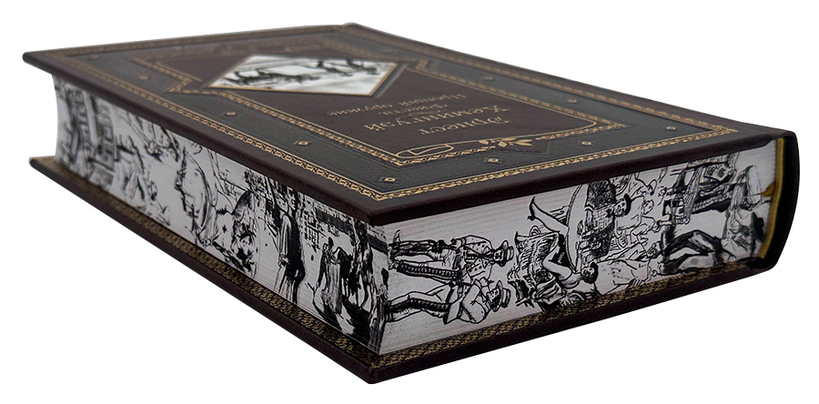 Книга выполнена в классическом формате 150 х 220 мм и заключена в переплёт из натуральной кожи ручной работы. Благородное тиснение, качественная офсетная бумага и безупречная полиграфия превращают это издание в настоящий коллекционный артефакт, достойный украсить самую взыскательную библиотеку. Удобный формат позволяет с комфортом погружаться в чтение на всех 893 страницах.