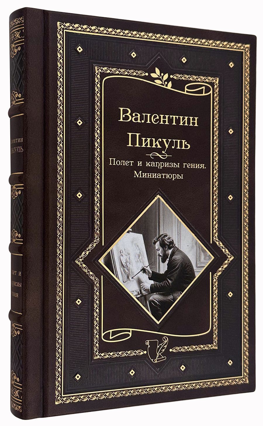 Исторические миниатюры Валентина Пикуля «Полет и капризы гения» в роскошном подарочном кожаном переплёте — это уникальное собрание литературных портретов, посвящённое людям творческих профессий, чьи судьбы и талант оставили яркий след в истории. Сам автор называл свои миниатюры «историческим романом, спрессованным до малого количества страниц» . В этом издании под одной обложкой собраны истории о писателях, художниках, музыкантах и других гениях XVI — начала XX века .