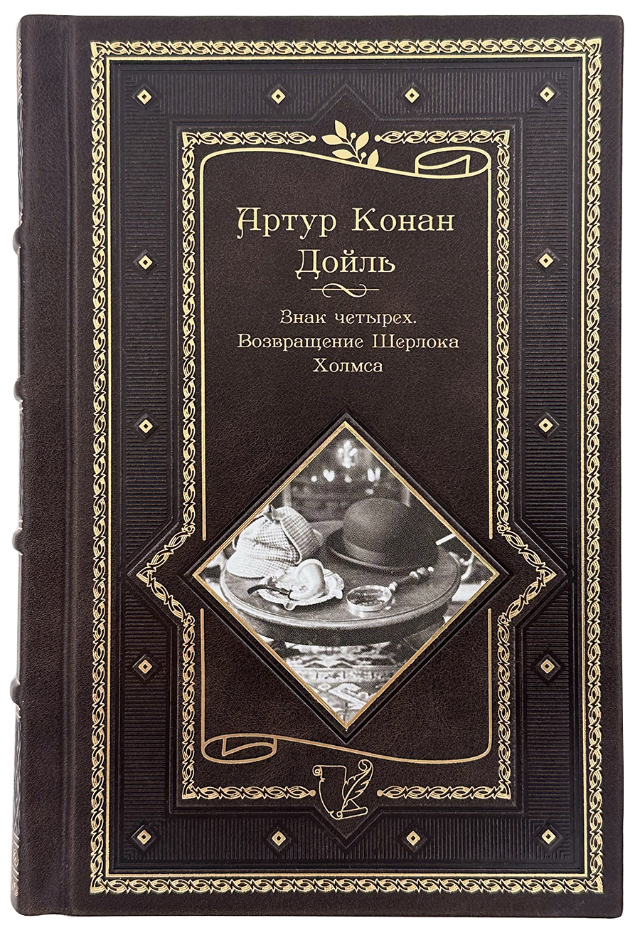 Легендарный роман Артура Конан Дойля «Знак четырех» и культовый сборник «Возвращение Шерлока Холмса» в роскошном подарочном кожаном переплёте — это издание, объединяющее два важнейших этапа в истории великого сыщика. «Знак четырех» (1890) стал вторым романом о Холмсе, где читателя ждёт не только запутанное дело о пропавших сокровищах и таинственной метке, но и знакомство с привычкой героя к кокаину, а также появление одного из самых ярких второстепенных персонажей — беспомощного, но гениального в раскрытии преступлений мальчишек-беспризорников .