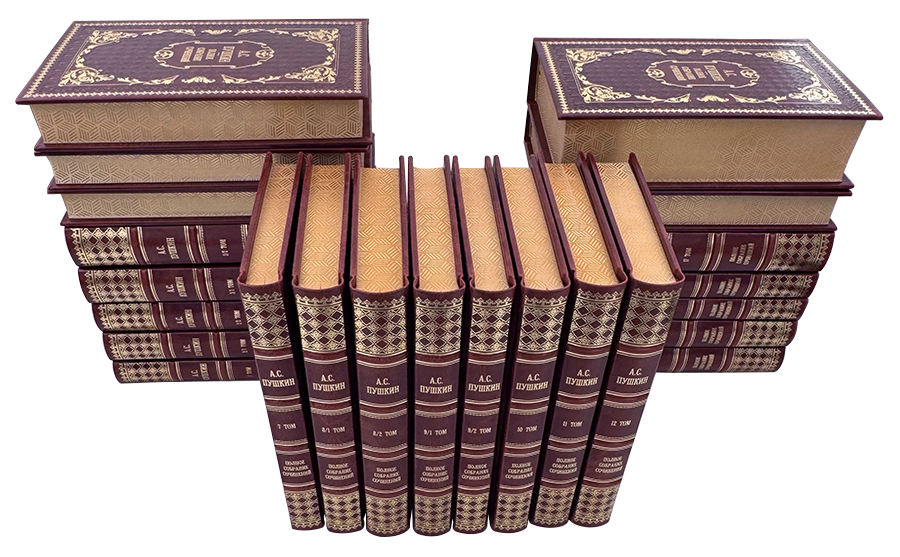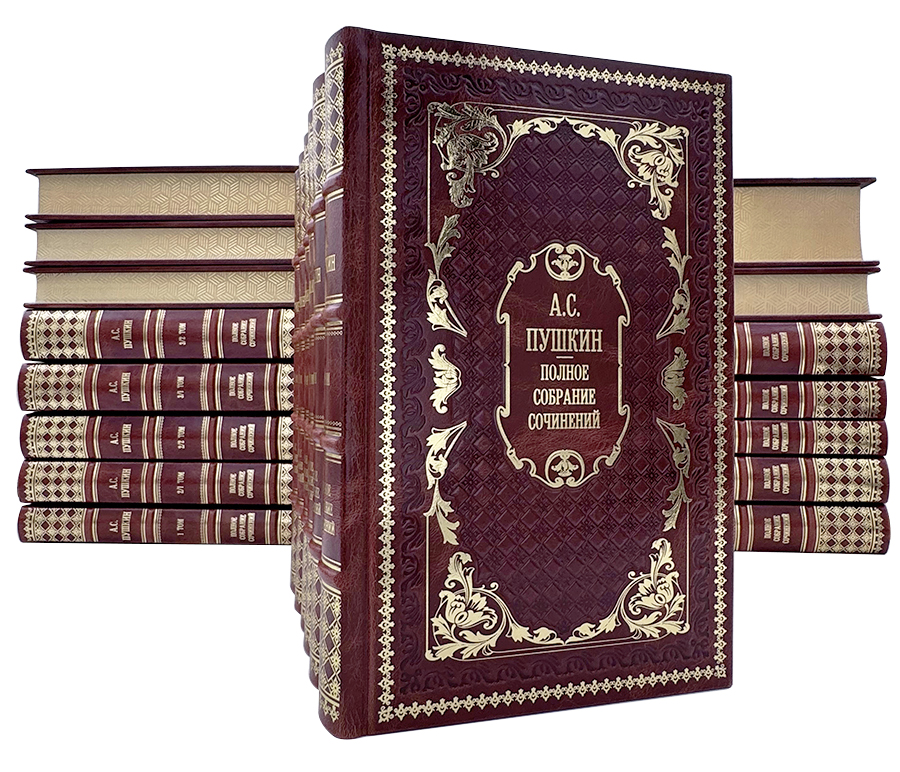 Это коллекционное самое полное издание великого русского поэта и писателя в эксклюзивном исполнении, которое станет солидным дополнением к любой библиотеке. Кроме всех произведений, написанных Пушкиным в коллекцию вошли ранее не опубликованные произведения, переписка Пушкина с другими людьми, литературная критика, заметки, рецензии и многое другое, что позволит всесторонне оценить многогранность таланта великого поэта. Книги отпечатаны на бумаге высочайшего качества, переплёт изготовлен вручную из натуральной кожи с тиснением золотой фольгой и блинтом.